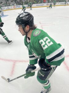 Bourque’s first goal of the game was unassisted at the 52 second mark of the second period. The goal put the Stars on the scoreboard after the Maple Leafs went up 3-0. Bourque then pulled the Stars within one goal (3-2 Toronto) with a goal at 5:31 of the second period. Canadian Olympic gold medalist Matt Duchene of Haliburton, Ontario, and Jason Robertson had the assists. Bourque then scored the game-winning goal with five minutes and eight seconds left in the third period to break a 5-5 deadlock. Defenseman Alexander Petrovic of Edmonton, Alberta and Duchene had the assists on an all-Canadian goal. Duchene won a gold medal for Canada at the 2014 Olympic Winter Games in Sochi.